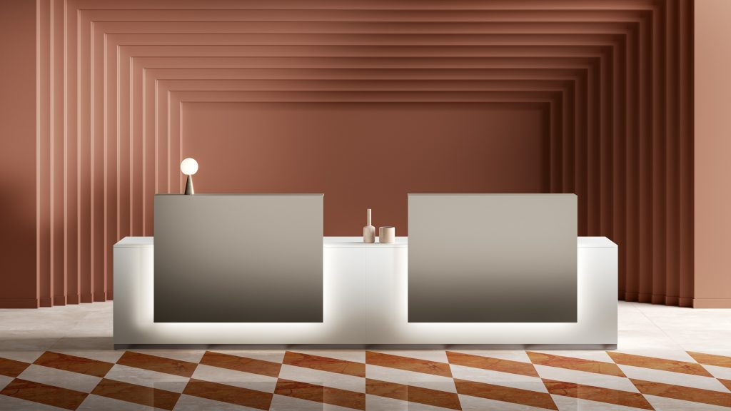 C’est l’expression de l’élégance dans l’accueil, la banque d’accueil LUX est personnalisable avec des finitions raffinées comme le matériau Fenix et la vitrocéramique. Ce mobilier d’accueil  Bralco offre un éclairage chaleureux qui enveloppe et paraît  »suspendre » le plateau.