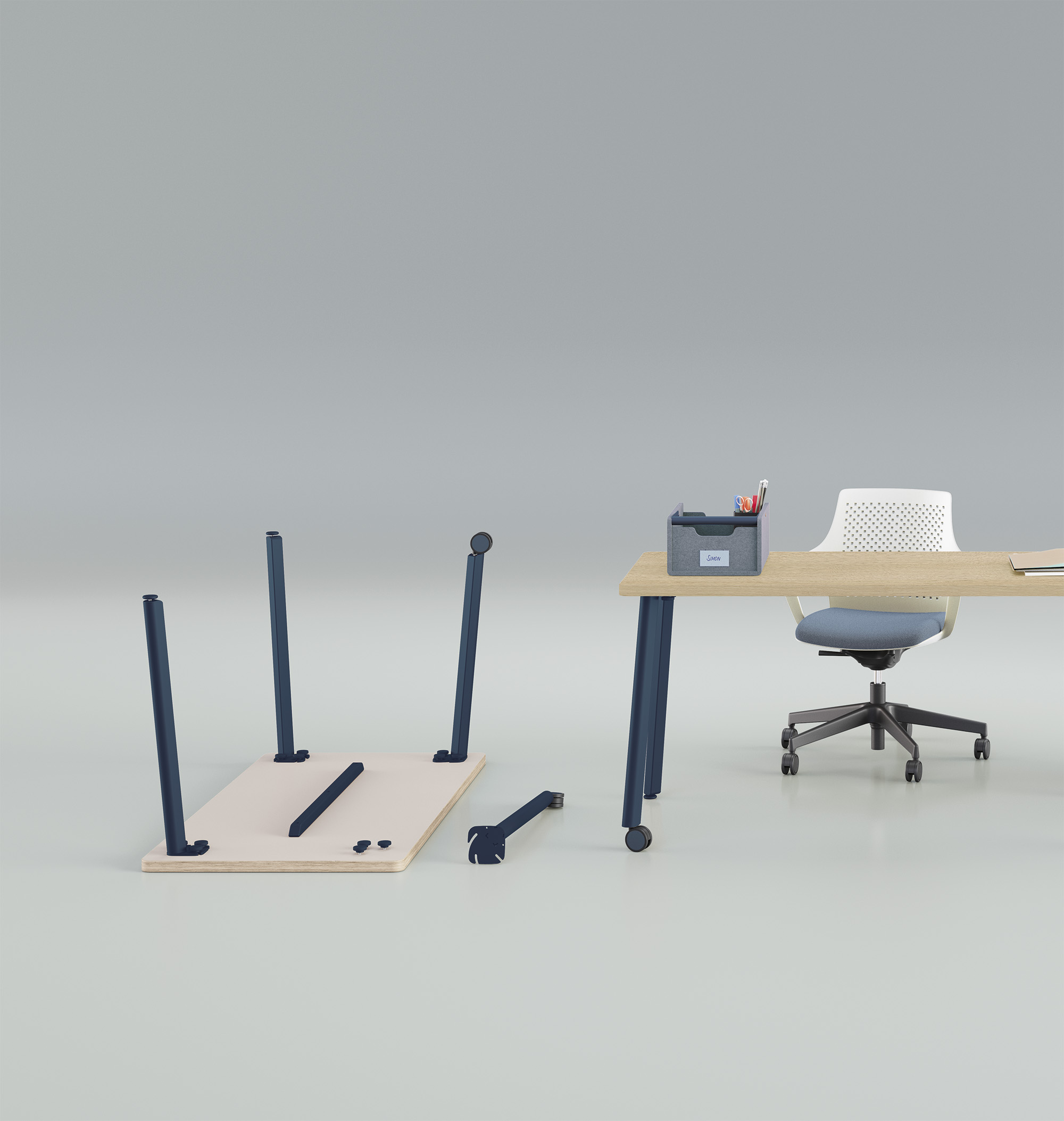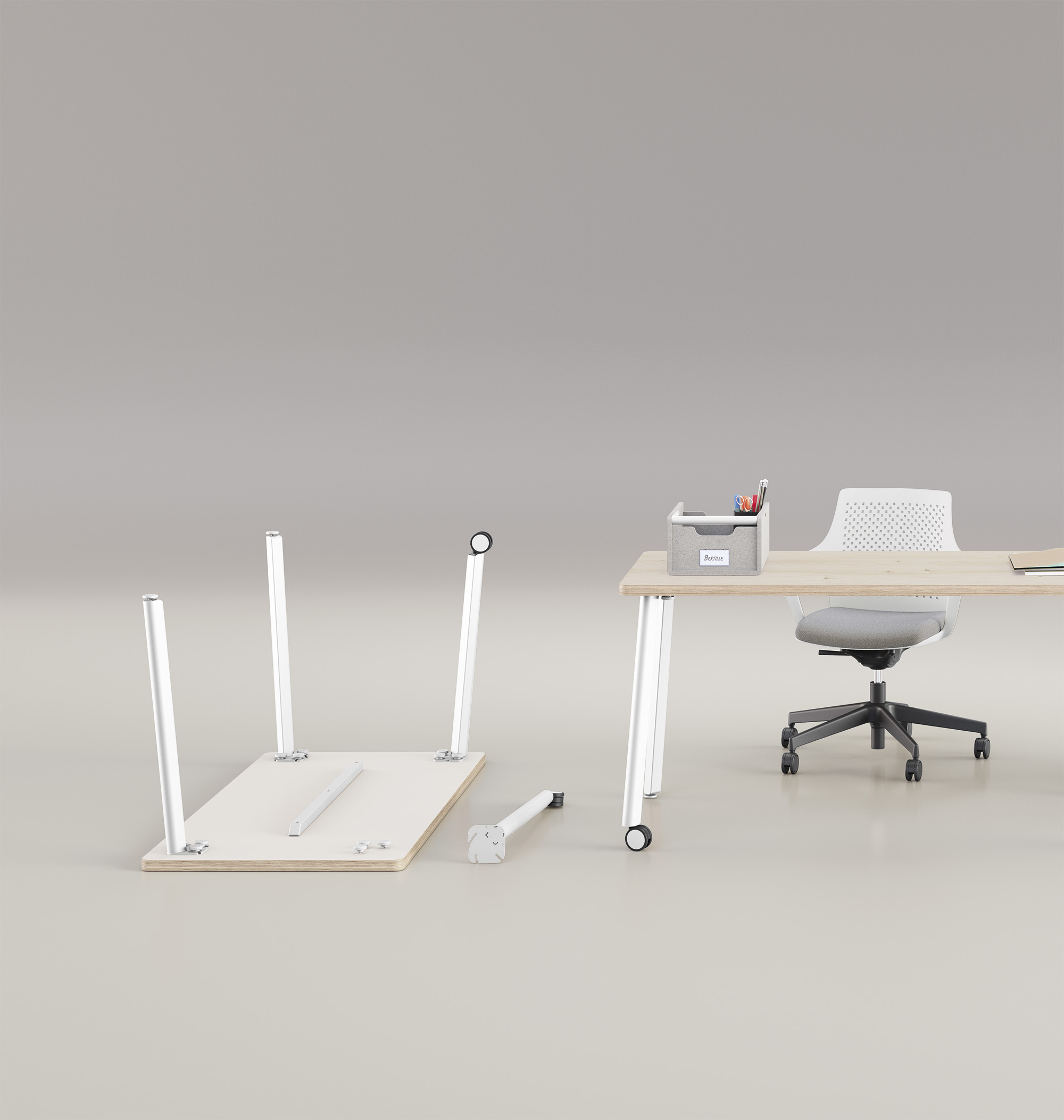 Les caractéristiques de cette collection ? Des roulettes pour un bureau simple à déplacer. Des molettes, pour un bureau montable et démontable sans outil.
