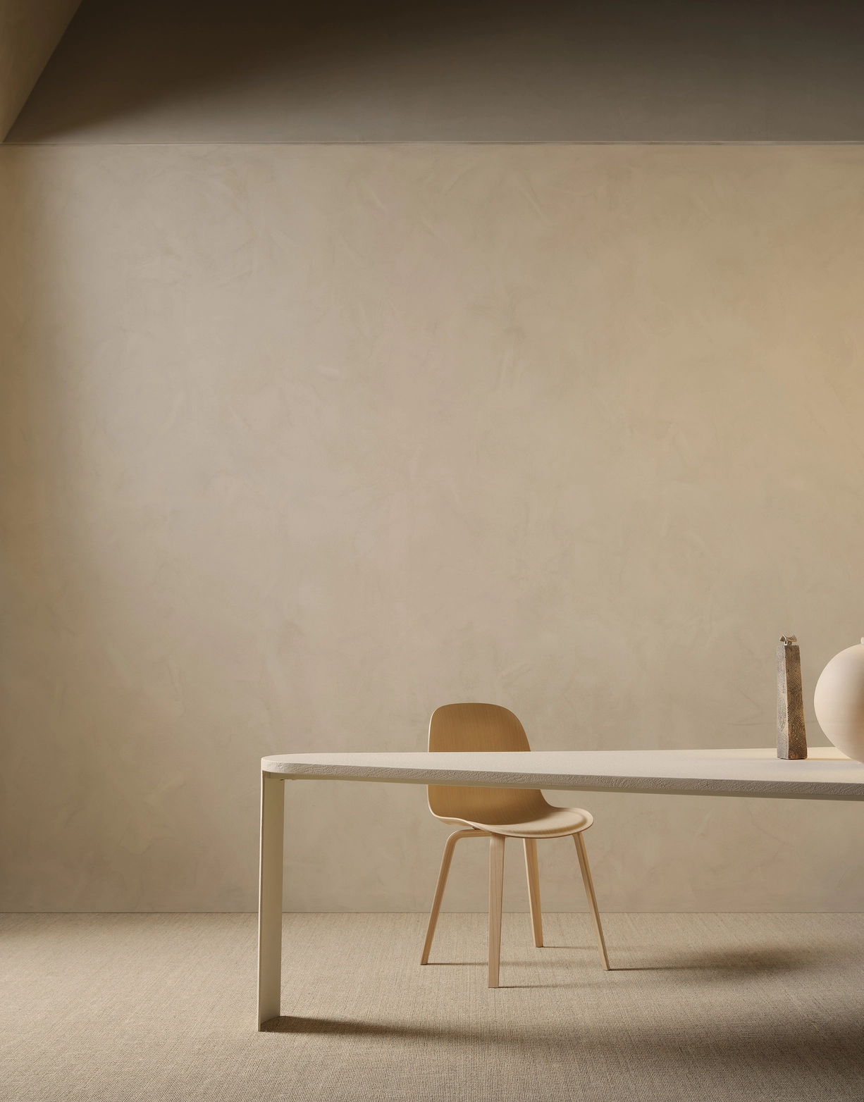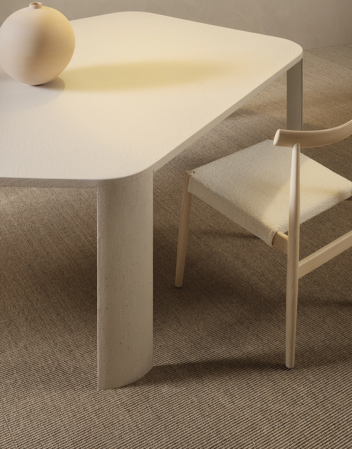 Le procédé d’application, à la spatule, est fait manuellement sur toute la surface de la table, créant une texture unique.