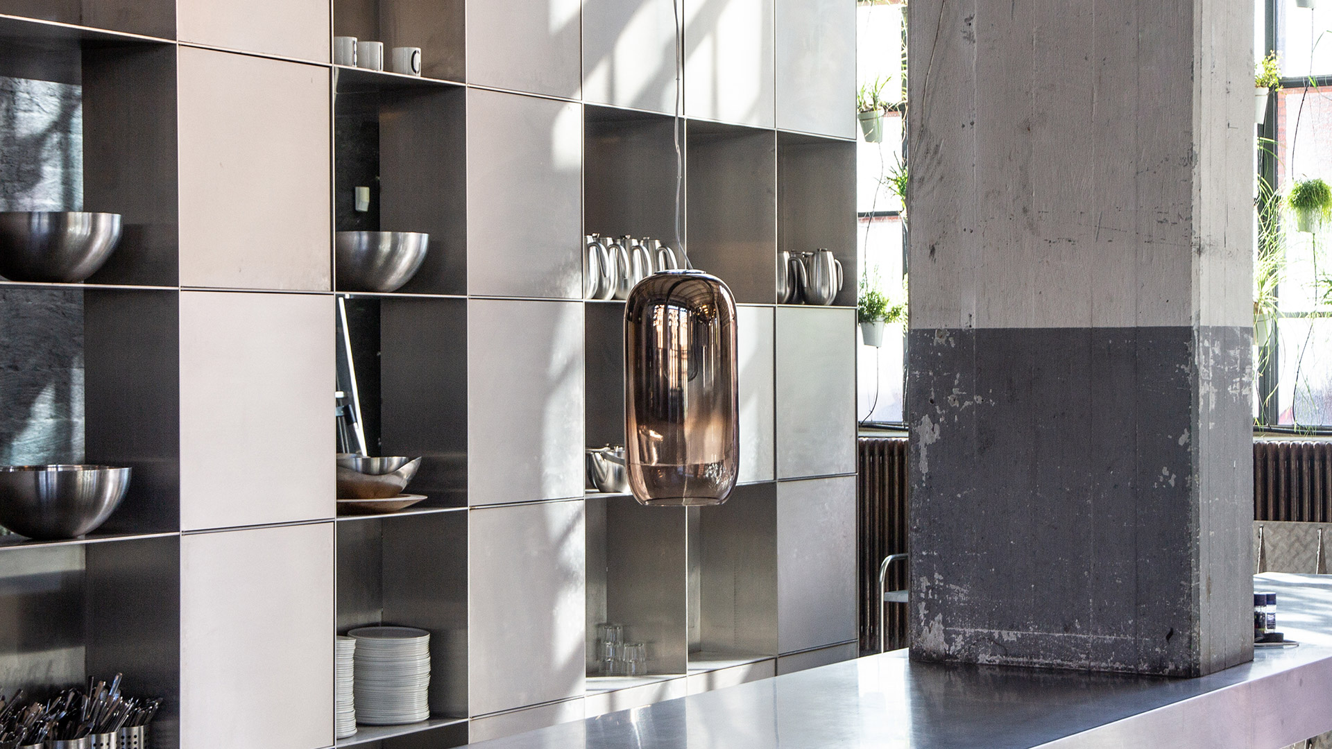 Il est travaillé selon une technique vénitienne ancestrale qui nuance la couleur du verre, et rend chaque pièce unique. Tournée vers l’avenir, Artemide y a associé une technologie innovante, la métallisation sous vide qui permet d’obtenir trois fascinantes nuances de finitions : blanc opalin, argentée et cuivrée.
